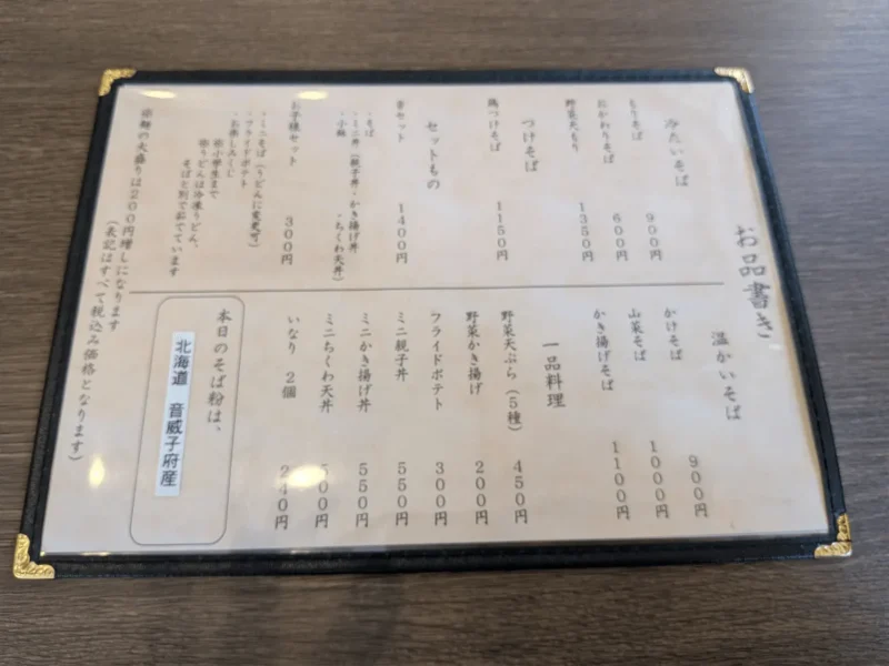 メニューの左下には「本日のそば粉は、北海道 音威子府産」との貼り紙が!