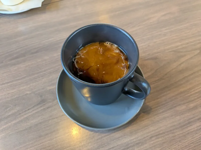 ミルクを少し加えてまろやかにしたコーヒーは、香り高くすっきりとした味わいです。美味しい食事の余韻に浸りながら、愛犬と一緒にのんびりとしたカフェタイムを過ごすことができました。